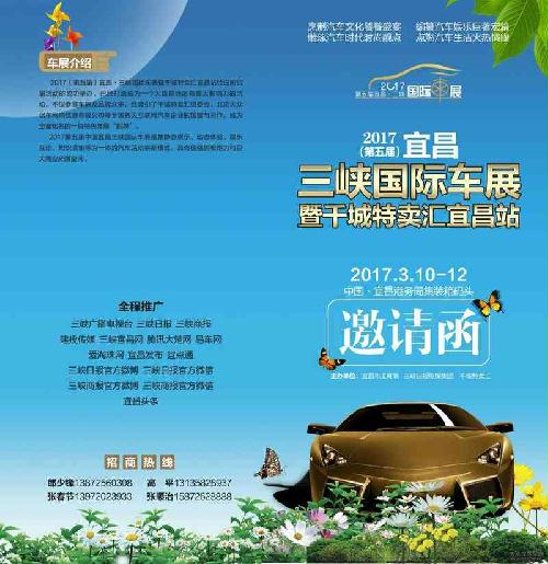 【太平洋汽车网 宜昌最新活动频道】3月10日-12日,2017(第五届)宜昌·三峡国际车展将在沿江大道港务局码头(廊桥水岸对面)盛大开幕,20000平方米超大展区,近500台各类品牌靓车齐聚,一场高规格、高起点的春季精品车展等你来逛。此次车展的参展范围将囊括轿车、商务车、微型车、越野车、新能源车、汽车金融机构、汽车用品、汽车装饰、汽车配件、汽车俱乐部等一应俱全。据主办方介绍,此次车展除了将秉承前几届“国际化、专业化、品牌化、特色化”的高水准定位,现场还将有国内首届汽车原厂模型展示、汽车百年文化系列展、家庭汽车趣味大赛等七大主题活动,势必将吸引全城目光。