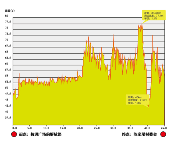 男子大众健身组(山地车型,比赛当年为18-60周岁即1958年4月14日以后出生—2000年4月15日以前出生):45公里;
