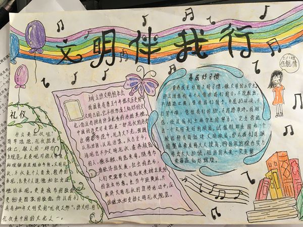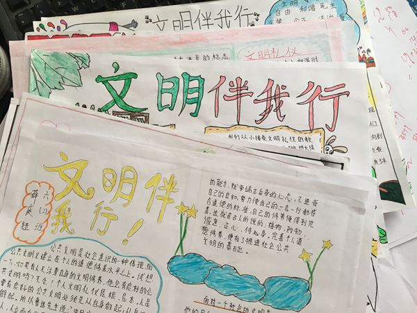 童眼看文明。学生纷纷以手抄报、黑板报等形式,围绕如何培养文明习惯,为学校创建文明校园和枝江创建全国文明城市做贡献,分享自己的文明小故事、小感悟。