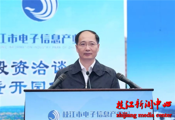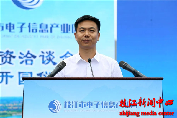 刘丰雷在致辞中指出:“枝江市电子信息产业园开园,是枝江电子信息产业的‘一小步’,更是枝江牢记习近平总书记殷殷嘱托,践行宜昌市委决定,加快破‘旧’立‘新’,勇立双核驱动潮头,争当高质量发展排头兵的 ‘一大步’。”