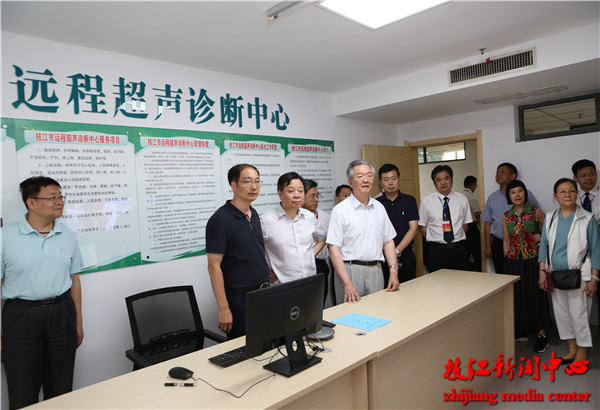 张文康一行首先来到市人民医院,参观了我市医共体建设,及远程影像、超声、心电及会诊诊断、互联网+信息化建设等情况。