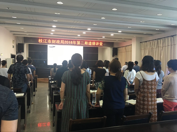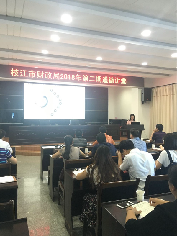 在“七一”建党节即将来临,也正值枝江创建全国文明城市之际,6月21日下午,枝江市财政局2018年第二期道德讲堂在局九楼道德讲堂活动室开讲,枝江市财政局全体干部职工70余人参加活动。