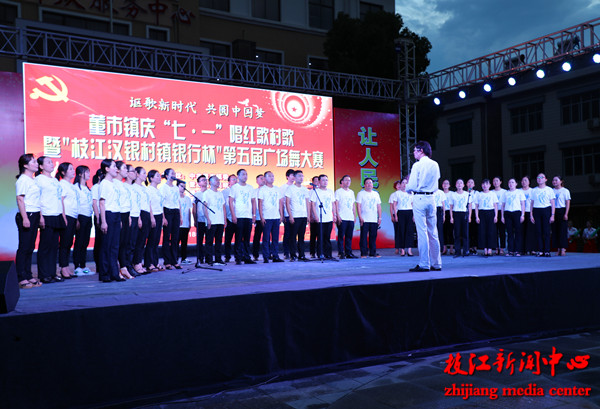本网讯(通讯员 陈黄奎)在中国共产党建党97周年之际,6月28日晚7点,董市镇庆“七一”唱红歌(村歌)暨“枝江汉银村镇银行杯”第五届广场舞大赛在高峡新村文化广场准时举行。董市镇广大党员干部、社会各界群众济济一堂,共享文化盛宴,欢庆党的生日。