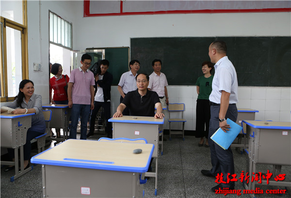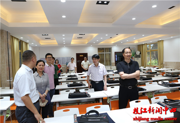 在枝江二中,刘丰雷来到考务办公室,详细了解各考场视频监控等备考工作情况及公安、食品、供电和交通等服务保障工作情况。随后,刘丰雷来到枝江一中考点,实地察看了高考视频监控室和播音室,询问了保密工作、指挥监控系统和播音系统准备情况,并听取了学校负责人关于高考备考和考点布置等方面的情况汇报。